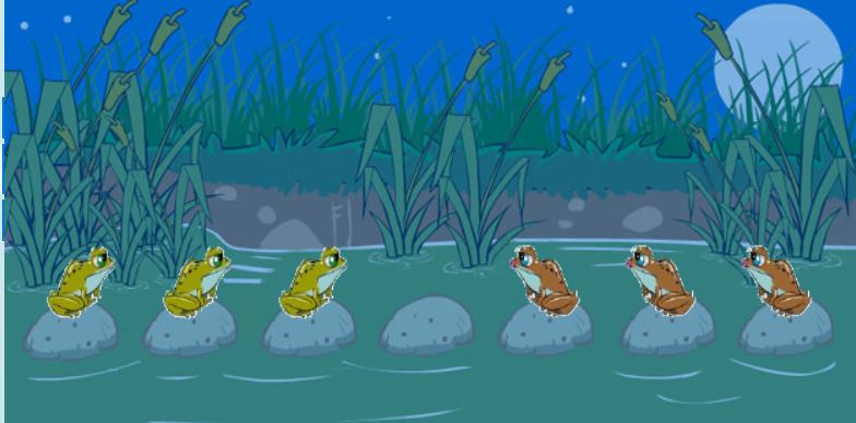 The picture is from the site data.bangtech.com/algorithm/switch_frogs_to_the_opposite_side, and the game actually works pretty well there 🙂